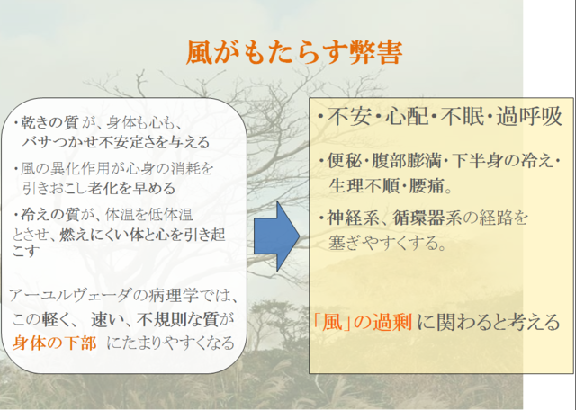 その中で風と空のヴァータが今回のテーマ「不安」に大きく関わっていきます。